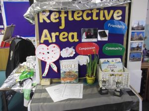 Each class has a reflective area where children can think about their emotions and the world around them. All reflective areas have a palm holding cross and a Bible so children can read about Christianity.